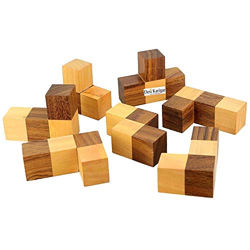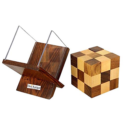 In 1933 physicist Piet Hein created a puzzle made of wood to illustrate the concepts of quantum mechanics during a lecture. What started off as an instructional tool has gone on to become a beloved puzzle game enjoyed by children teens and adults and the desi karigar handmade wood game soma cube with stand brings its challenging fun to you. The desi karigar handmade wood game Rubik's cube with stand is a complete soma cube set with a classic design. You'll receive a variety of pieces in different shapes that you must fit together to create the completed cube. Time yourself and try to beat your record or go head to head with friends or family members and see who can assemble the cube the fastest. When not in use the cube can be placed on the included stand for displaying as a decoration. Its handsome design makes it a popular table game for cafes and coffee shops and a great addition to waiting rooms to help clients and patients pass the time. Handmade from start to finish in India the desi karigar handmade wood game soma cube with stand is constructed out of fine quality sheesham and haldu hardwoods making it as durable and attractive as it is fun. The puzzle measures 4 inches x 3 inches x 5 inches in size so you can play it at home or on the go. Put yourself to the test and see how quickly you can assemble the soma cube or give someone special a gift that will provide hours of entertainment. Order the desi karigar Rubik's handmade wood game soma cube with stand now.