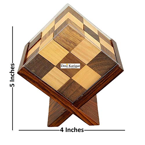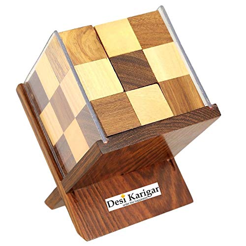 Handmade Wooden Indian Rubik's Cube Block with Stand Puzzle for Kids (Brown)