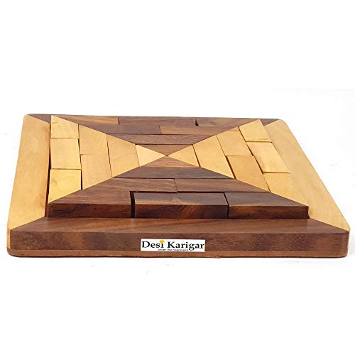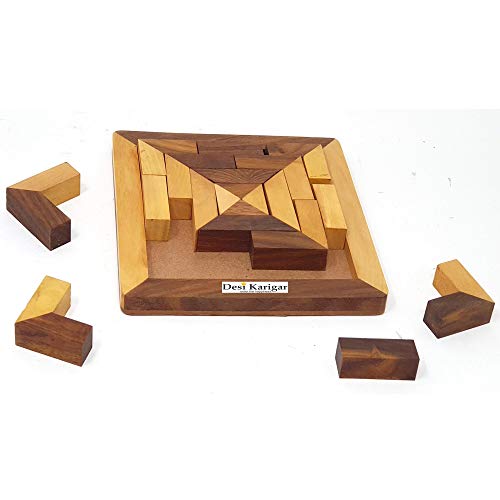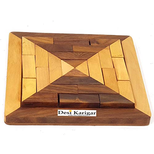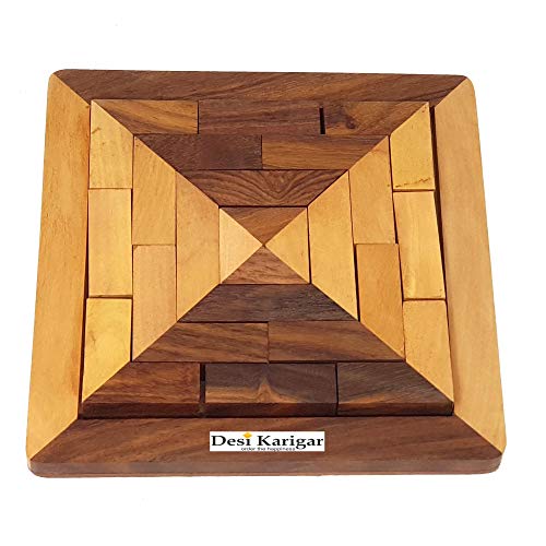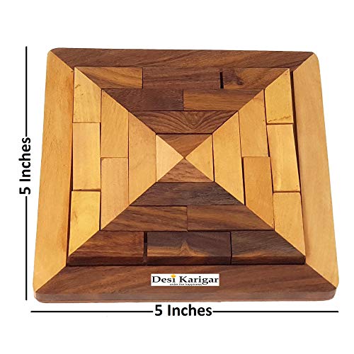 Handmade Indian Wood Tangram Jigsaw Puzzle for Kids (Brown)