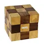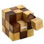 Gift this fascinating wooden puzzle from the house of desi karigar to polish your child's brain and hand coordination. It is an elastic string connecting all wooden blocks in two different colours. The jumbled up blocks in a snake-like structure have to be connected to form a cube. This puzzle is unIQue and it is as challenging for an adult as it is for a child. Keep it in your living room and have a fun filled evening with your guests. The wooden snake cube puzzle is made up of a long wooden chain of 27 cube lets. By intricately bending placing and building the cube lets on top of one another you can create one solid cube. Each of the 27 cube lets is connected to one another with an elastic band on the inside to keep the cubes together but still bendable. When finished you'll have a 3-inch by 3-inch by 3-inch cube. The wooden jigsaw puzzle snake cube is a complete puzzle set designed for use on the go. Unlike other puzzles that you'll find in stores the wooden jigsaw puzzle snake cube was made to stand the test of time. The pieces are all constructed from solid Indian rosewood not flimsy cardboard or plastic. The handsome grain of the natural wood makes this game as much of a decorative item as it is a challenging fun toy. As a result you can leave it assembled in a game room or den. It's even great to keep on a desk in an office on a table in a waiting room or a shelf inside of a coffee shop or cafe. No matter where you use it or display it you're sure to be impressed with the Indian handcraftsmanship. Get the perfect travel game to keep you or your kids entertained wherever you go or give the gift of a toy that is of much finer quality that anything you'll find in stores. Order the wooden jigsaw puzzle snake cube for yourself or to give as a present to a special adult or child. Add this puzzle to your cart now.