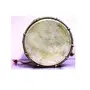 Drum for kids Wooden and Leather Instrument. Damru is very common throughout the Indian subcontinent. The Damru is known as a power drum and when played tends to bring spiritual energy. It is associated with the Hindu deity Shiva. In India Damru has been played by the monkey player also to dance with monkey. It is Handmade twisting the wrist vigorously causes the knot at the end of the string to beat the two ends of the drum. Great sound lots of fun. IT IS HANDMADE BY INDIAN ARTISAN..It is have some imperfections due to its uniqueness. it is used for pooja and festivals.. Size and colors may little bit vary. 3.5""w x 5.5"