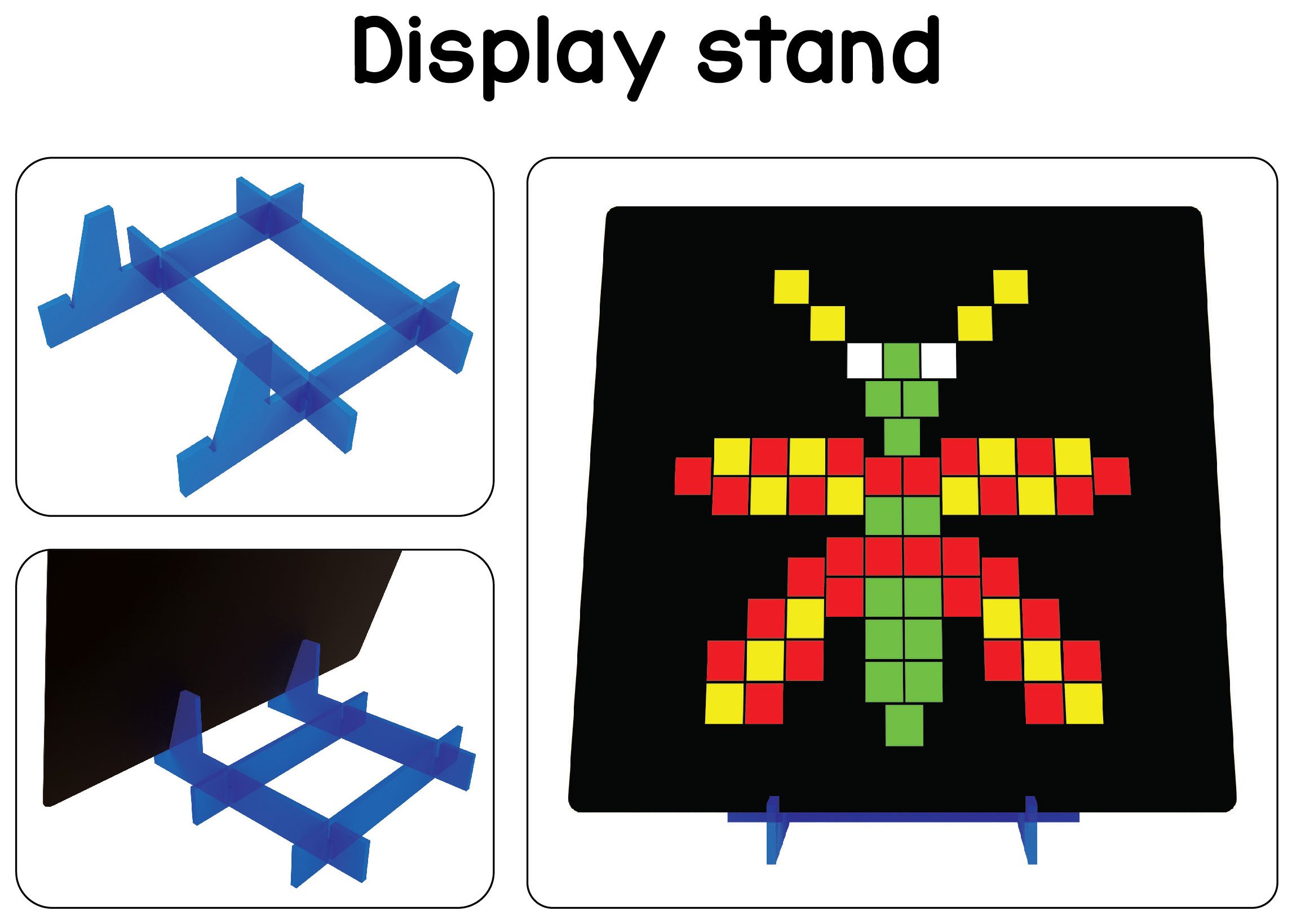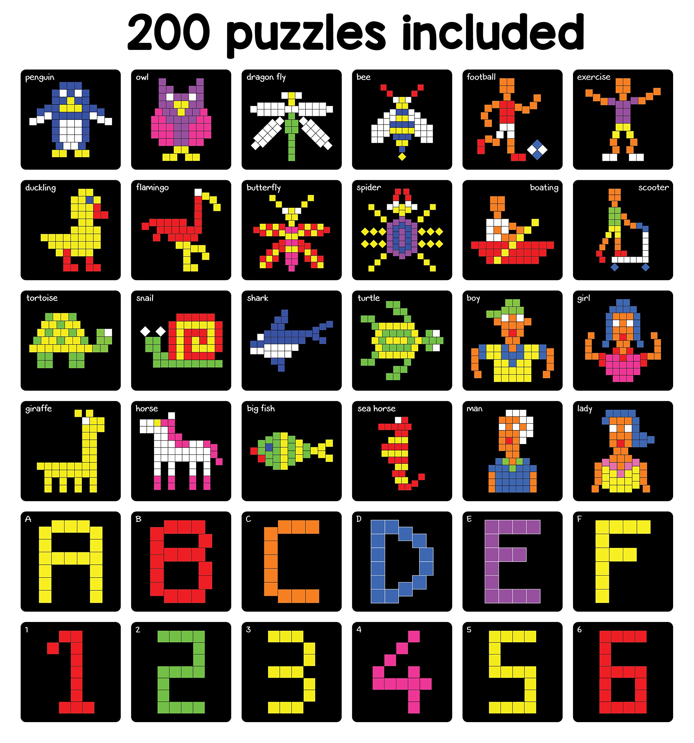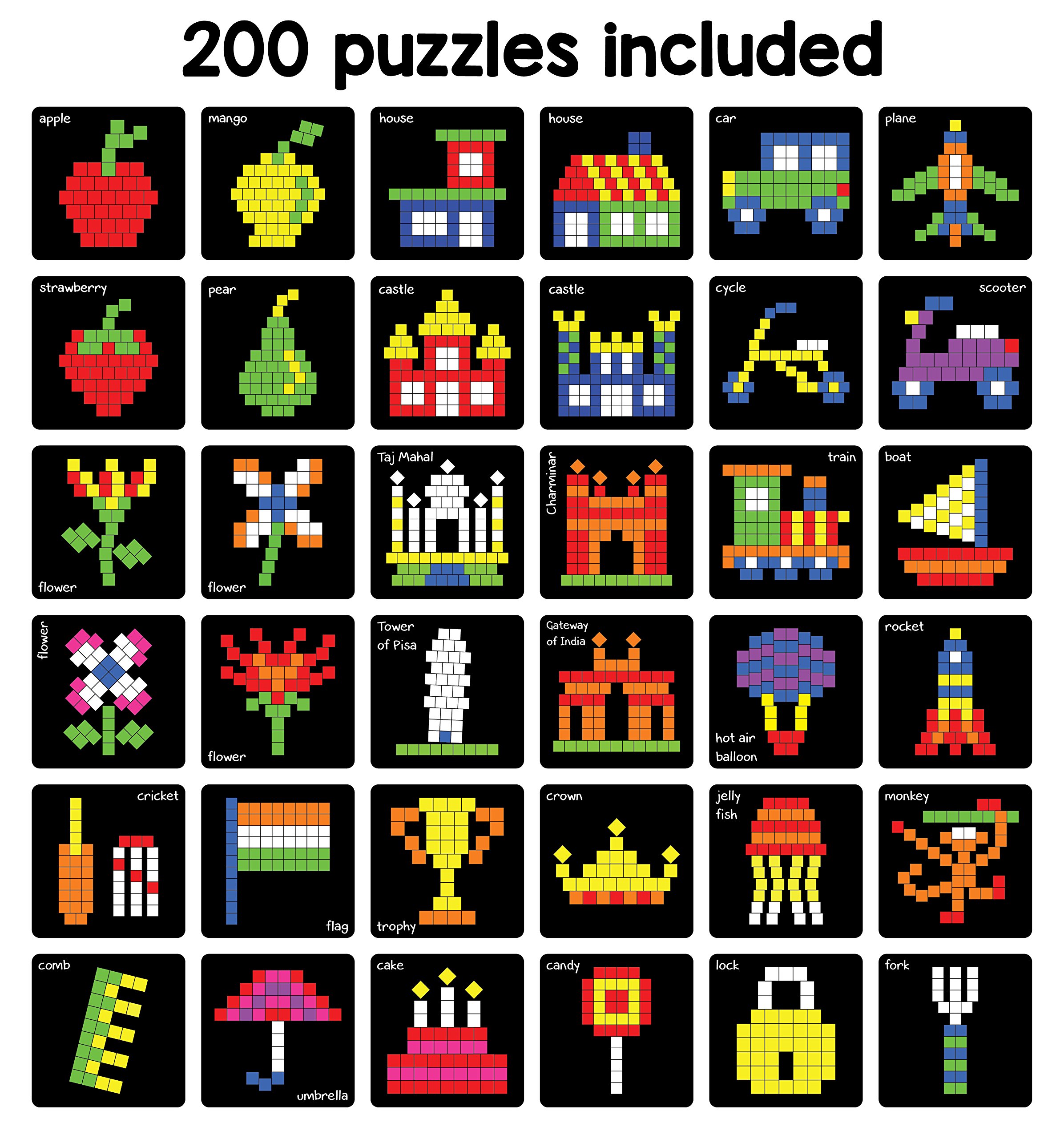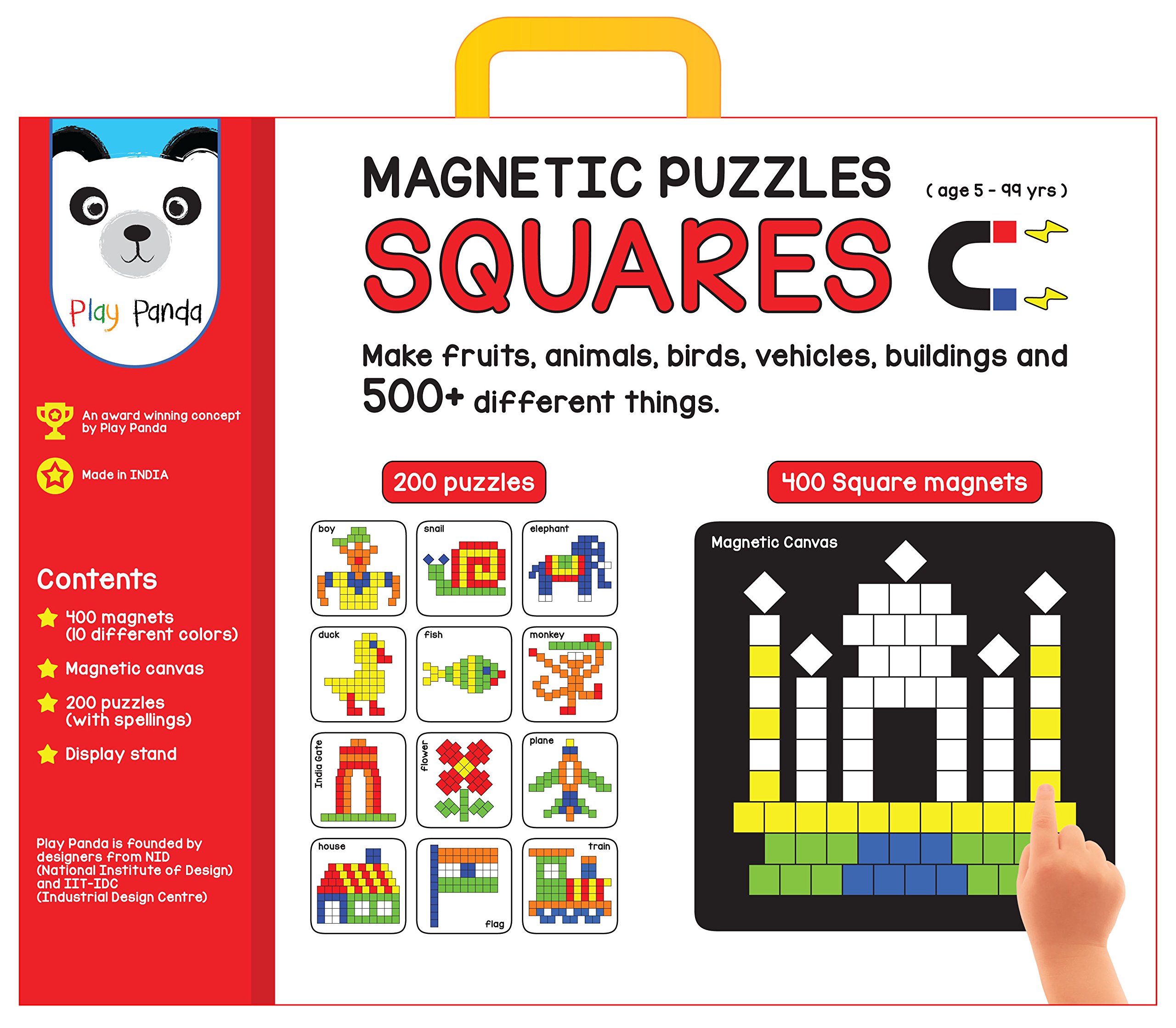 Use 500 colorful magnetic squares to make birds animals vehicles objects and many amazing things. There is a magnetic canvas inside on which the kids can make more than 500 different patterns. We have given a puzzle book with 100 patterns to help get the kids started. There is a wooden stand as well so that parents can put their child's creations on display. This is a perfect toy for 1-2 kids to spend their time indoors exploring and developing their creative skills. The toy is engaging for both boys and girls. It makes an amazing birthday gift. Magnetic Puzzles make children think in a different way about objects around them. It improves their geometric and spatial understanding. Kids pick up pinch and grasp pieces and move them around. This leads to fine motor development and hand-eye coordination. When you display your children's creations (wooden stand included) it gives them a morale boost and helps build their confidence.