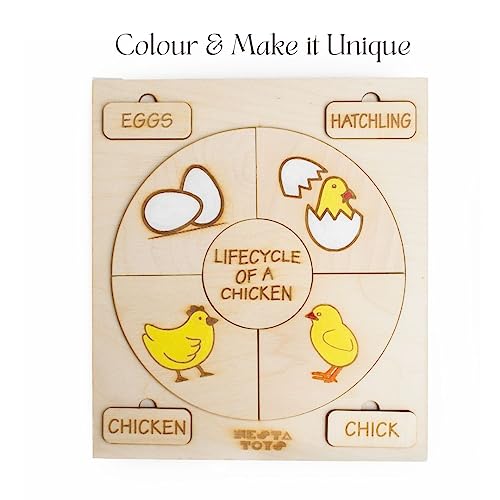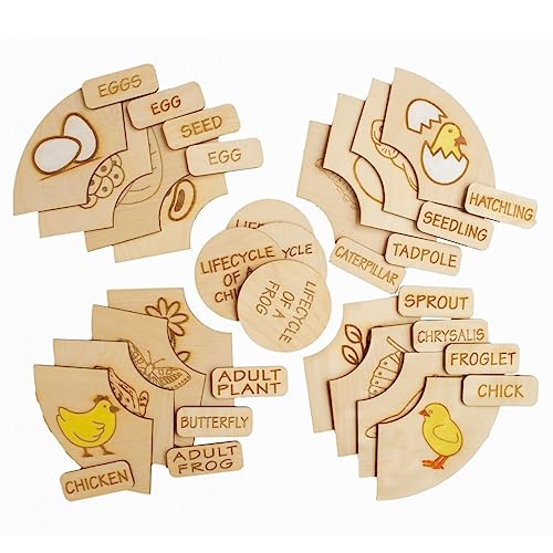 • Introducing our Montessori Life Cycle Puzzle a captivating and educational toy designed to teach about the fascinating life cycles of four different creatures: the frog plant chicken and butterfly. This puzzle not only engages in hands-on learning but als