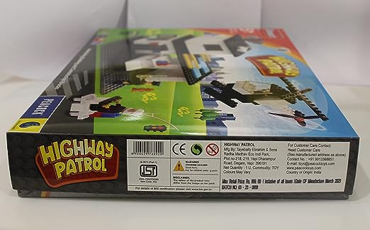 Peacock Highway Patrol One of the Most Important aspects in the development of the child is having the right type of toy to play with. The basic scores in a toy are :Besides making sure that they are SAFE and DURABLE, the parent must o make sure that they are Educational, Creative, Stimulative & Imaginative. We at PEACOCK TOYS have taken these aspects of toy making very seriously. Our New Product "HIGHWAY PATROL" is Safety Compliant, These Blocks are made of Virgin durable plastic for the child to play for long happy hours. The advantage of these blocks is that they are compatible with the entire range of Peacock Smart Blocks, ing more sets one can make bigger and more variety of Models. Every Child is curious by nature and to stimulate this, we have used colors intelligently. The basic colors used in our Blocks are Red , Yellow, Blue, Green, & White. Bright Colours attract attention and stimulate the child's mind. Blocks stimulate Imagination which in turn facilitates creativity, action.