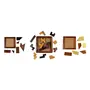 An engrossing set of three puzzles crafted in polished wood to engage your grey cells and pose a light hearted challenge at any soiree. Created for all the beautiful minds by the artisans from Uttar Pradesh, India. Piece 1 - 4x4x0.5, Piece 2 - 4.5x4.5x0.5, Piece 3 - 6.75x6.75x0.75