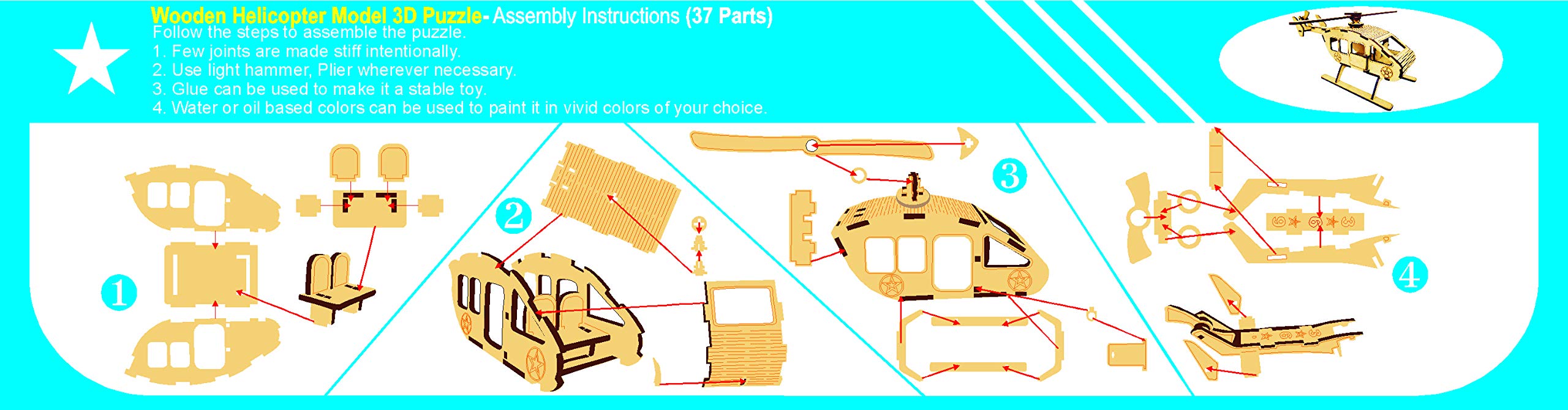 Make home decor fun while having it. Now you can make your own home decor using StonKraft DIY wooden range. This is a DIY Helicopter 3D Model where the Pieces combine to become the plane model. This is a super fun and engaging activity fit for children or adults. Solve a fun 3D puzzle and construct a model of Plane by yourself or with the help of instructions available in the kit. You do not need any glue to assemble this model. It is made of high quality wood(Pine MDF) of 3 mm thickness. It is a great puzzle/model to have or to gift. This product is completely Made in India and 100% brand new. Plane dimension is 26 (L) x 12.7 (H) x 10 (W) cm (10.5 inch x 5 inch x 4 Inch)