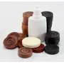 This set contains 24 carrom coins + Tournament Striker + Powder that are made of wood. These coins are made using premium quality wood. They are of the right weight and strength for a game of carrom. These coins have good rebounce. Excellent results with the use of powder on the carrom board.