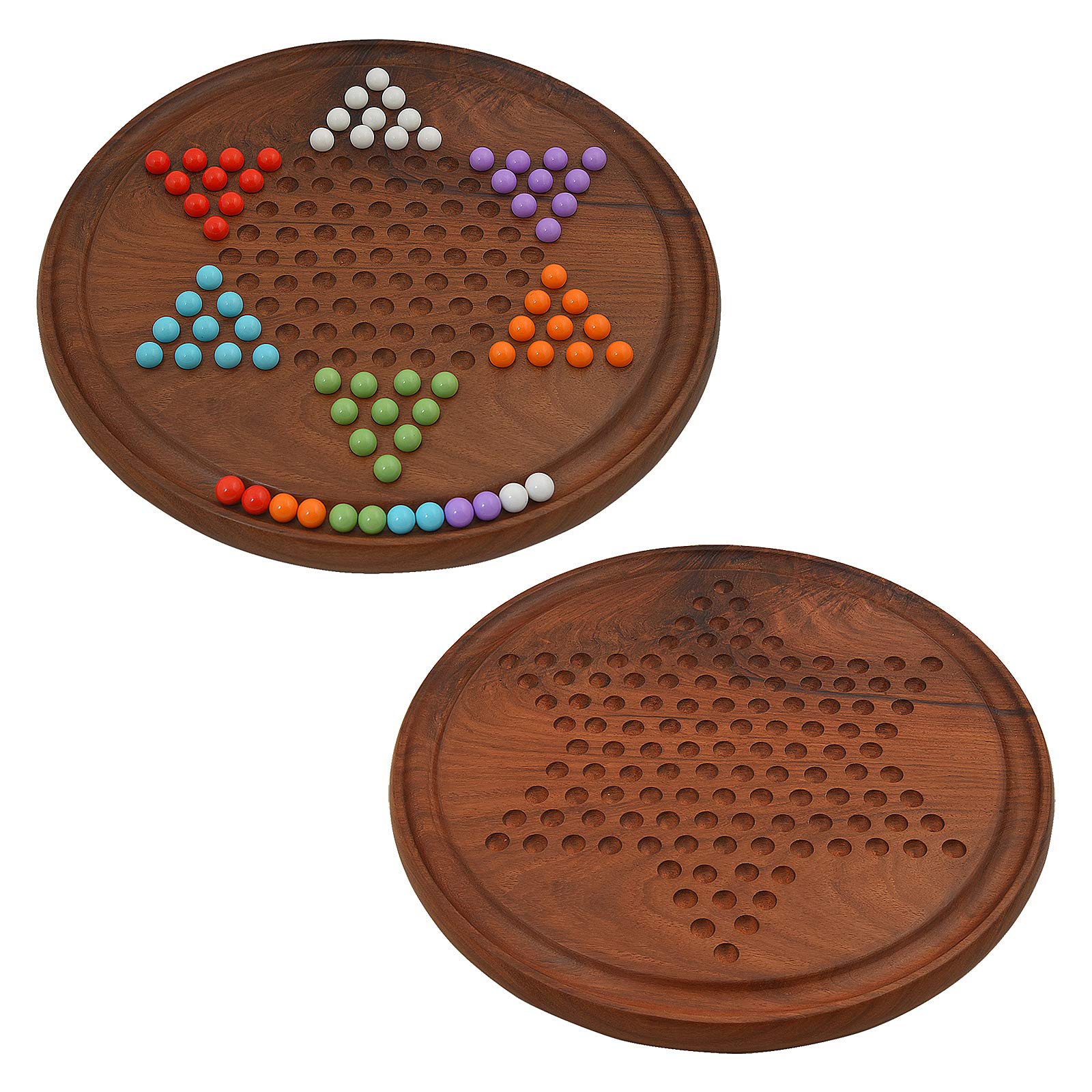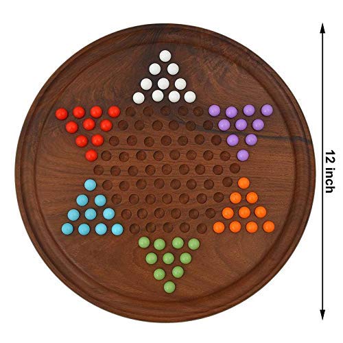 VARANASI WOODEN TOYS Chinese Checkers Game Set with 12-inch Diameter Round Wooden Board and Acrylic Bead