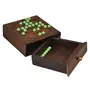 VARANASI WOODEN TOYS Handmade Wooden Solitaire Board Game with Storage Drawer (Green 5 x 5-inch)