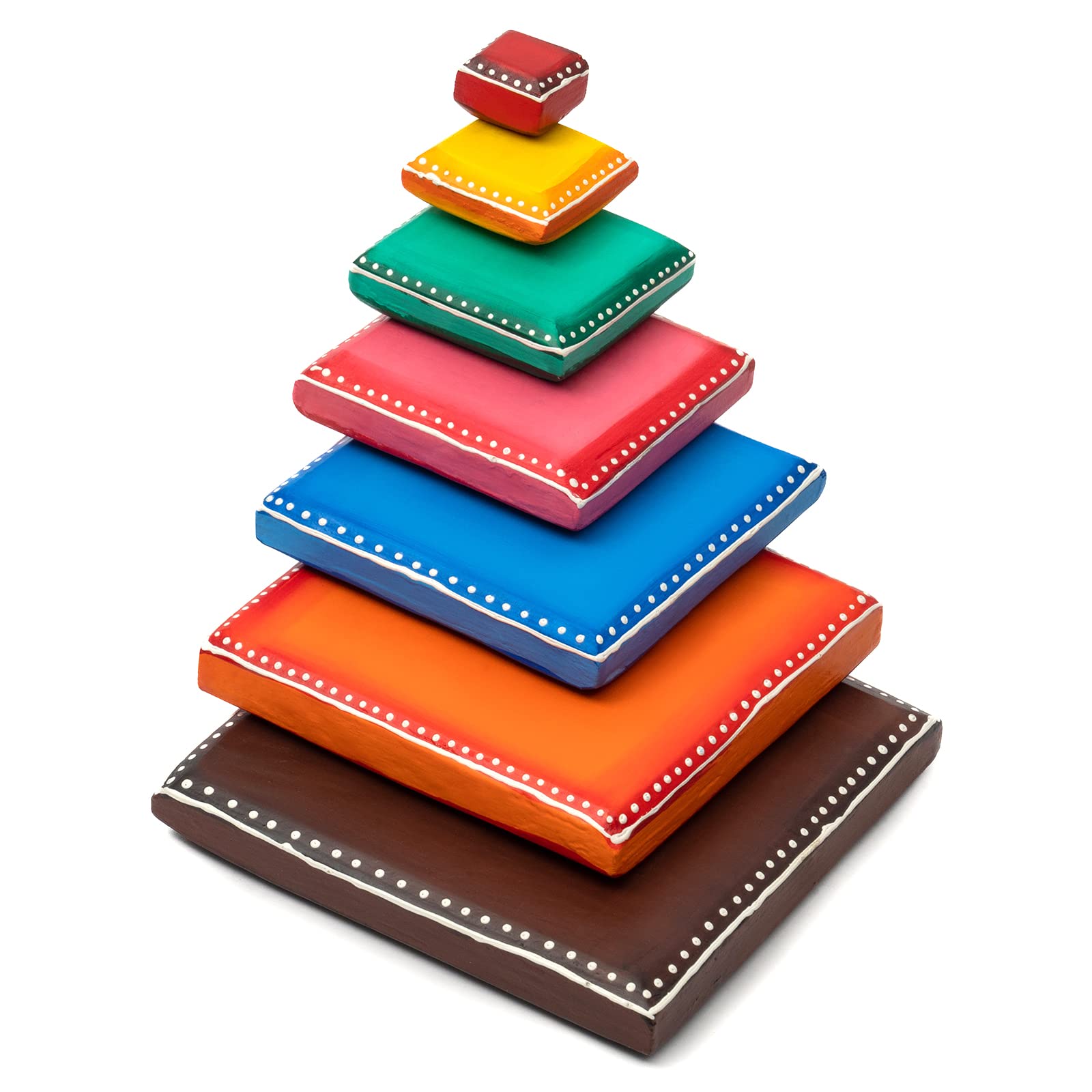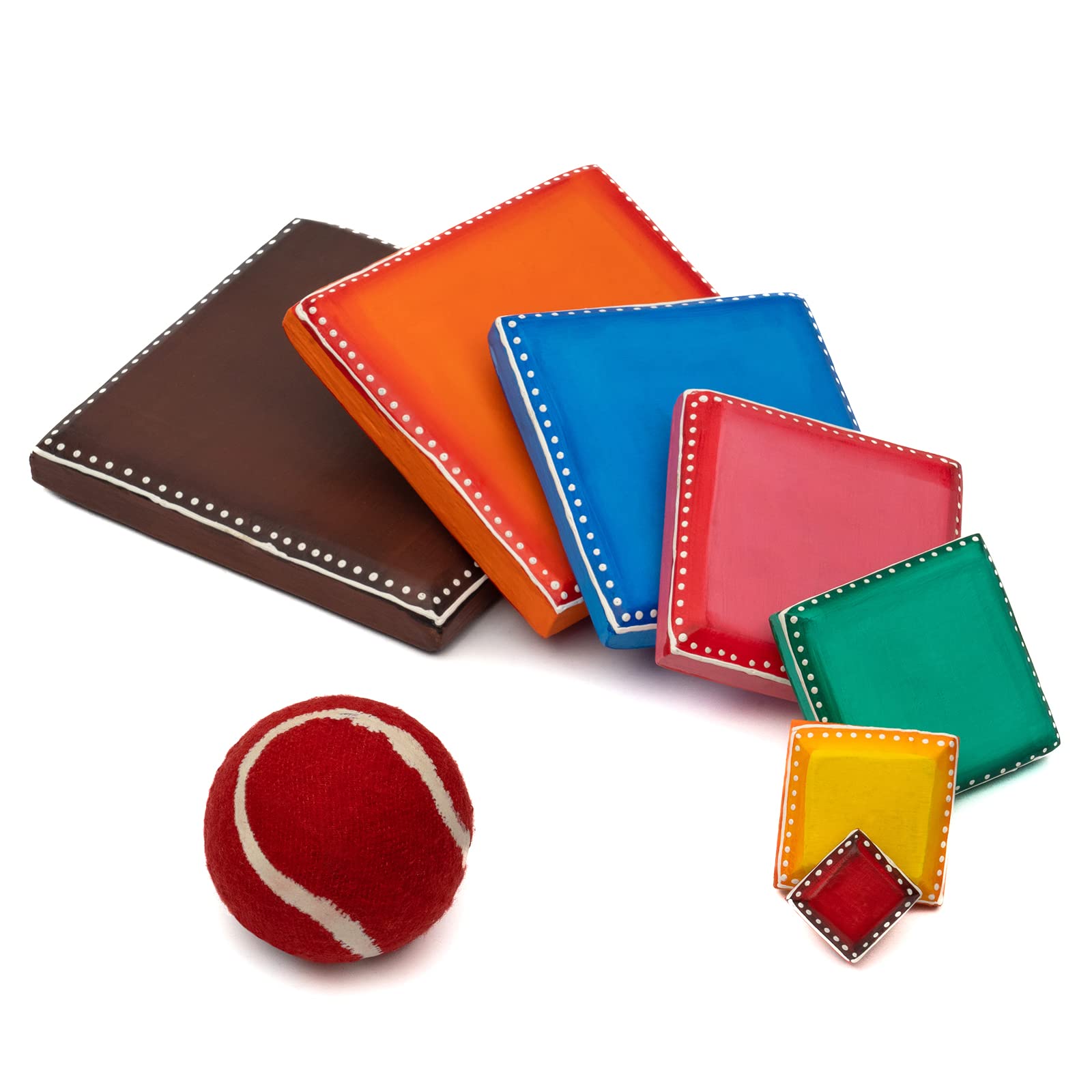 VARANASI WOODEN TOYS Wooden 7 Pieces Traditional Indian Handmade Outdoor Game Lagori Pitthu Eco Friendly Multicolored Color for Toddlers Montessori Play Set for Girls and Boys Show Piece. Handmade Eco-friendly Traditional Indian Handmade Outdoor Game Lagori / Pitthu Set or Seven Wood game made with hand crafted wooden and beautifully includes rubber ball. How to Play: Lagori is played between two teams using seven wooden blocks and a rubber ball. Each team gets nine chances 3 players taking 3 chances each to knock down the stones that are stacked vertically from a distance of about 20ft. A traditional Indian outdoor game. Hours of fun and improve team activity. Concentration Physical development team buildinghand eye coordination Strategy building and Social skills. Vocal for local: Indian handmade product.