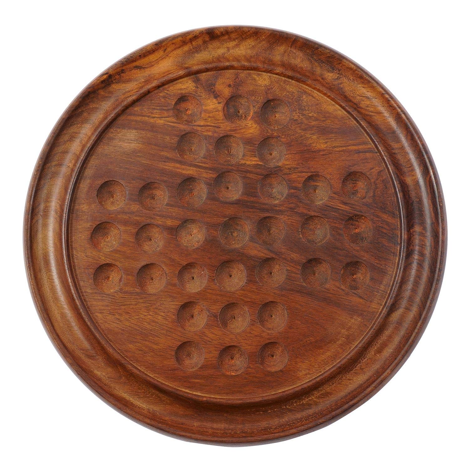 HomeBabyToys & GamesGamesVARANASI WOODEN TOYS Wooden Solitaire Board Game in with Glass Marbles Brain-vita Unique Game 9" - Best Gift for Kids Teens & Adults Made in India (RH_Solitaire_2)