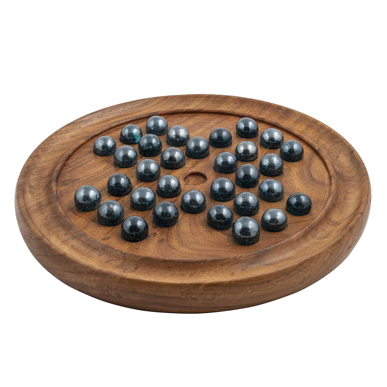 VARANASI WOODEN TOYS Wooden Solitaire Board Game in with Glass Marbles Brain-vita Unique Game 9" - Best Gift for Kids Teens & Adults Made in India (RH_Solitaire_8)