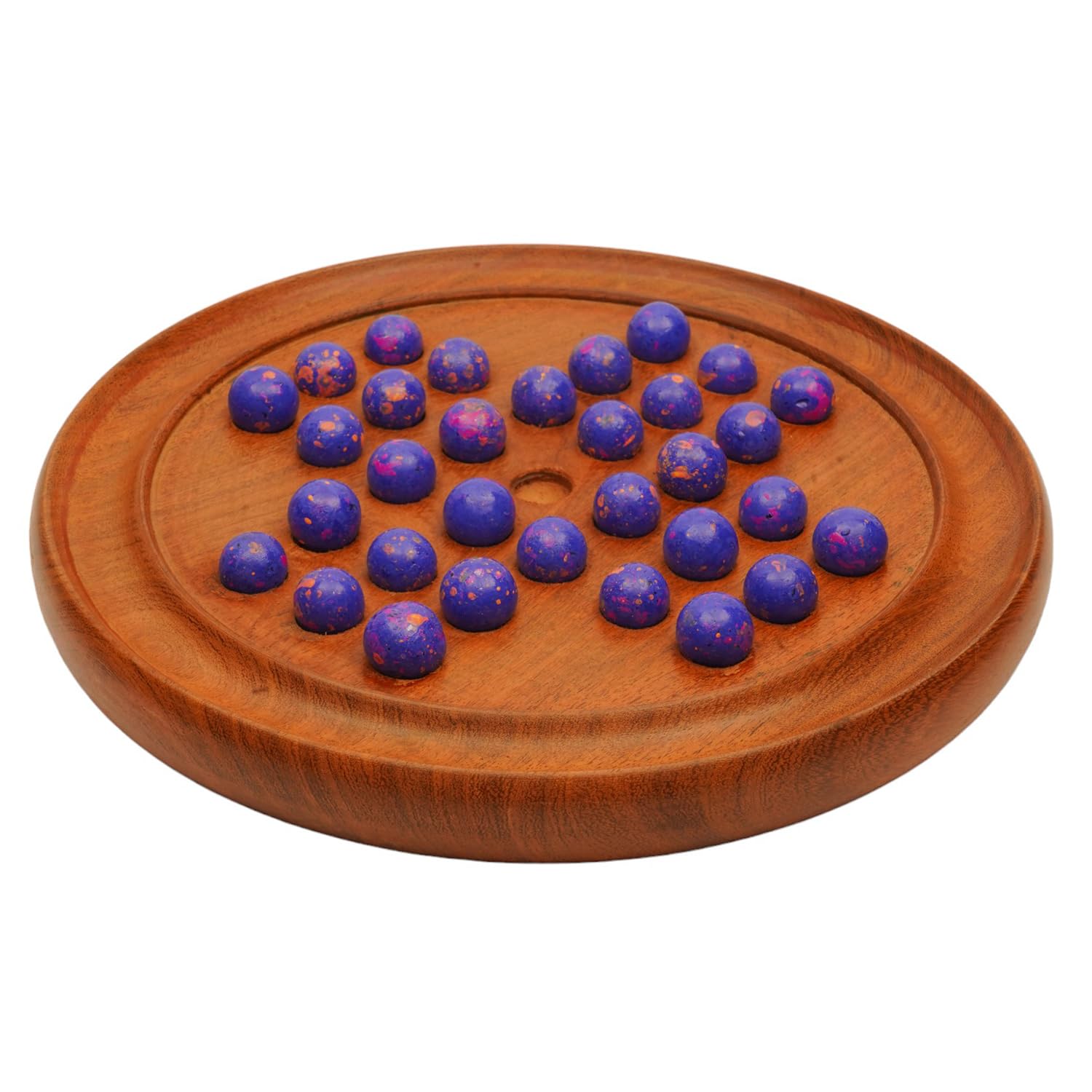 VARANASI WOODEN TOYS Wooden Solitaire Board Game in with Glass Marbles Brain-vita Unique Game 9" - Best Gift for Kids Teens & Adults Made in India (RH_Solitaire_9)