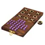 This is a 2 in 1 wooden board games set consisting of tic tac toe and solitaire. It comes in square shaped box. One side of the open top lid functions as tic tac board and the other side functions as solitaire board. Wooden pieces for tic tac toe and balls for solitaire. The twin game set is made in high quality wood and is handcrafted . Tic tac toe may be a simple game to play but it can keep children entertained for hours. Rules: Remove the central hole peg before you begin play the game.The player takes a ball and jups horizontally or vertically but never diagonally over the adjacent ball to the empty hollow beyond it.The ball that has been jumped over is removed from the board.The player repeats this until it is no longer possible to jump over any more balls. The game level: The last remaining 6 or more pieces is "general";The last remaining 5 pieces is "good ";The remaining 4 pieces are "very good";The remaining 3 pieces are "smart";The remaining 2 pieces are the "top";The remaining 1 pieces is "master";Material : Wooden Package: 1*Solitaire game board with 33 balls About The Brand: VARANASI WOODEN TOYS Home & Lifestyle is establish in the year 2016. We are Manufacturer. Supplier Exporter of Wooden Handicrafts etc. We have perfect Indian handcrafts. We have skilled team of craftsmen. A design and development cell to execute our productions quality standards and their timely delivery. We provide full assistance in understanding our clients requirements with packing promotions logistics with very economic mode. Our Product are shipped all over the world. Our primary products are Wooden Items like Nesting Dolls Wooden card Holder Wooden Tray Home Decor Items and games like Tic Tac Toe and many more.
