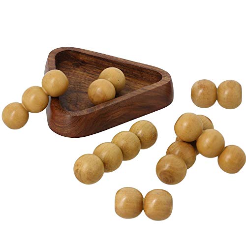 The Handmade Wooden Pyramid Puzzle Game for Kids from the house of will keep your child occupied while helping him or her build fundamental skills. This challenging unique game can also be played at home for time away from the television video game system and computer. The Handmade Wooden Pyramid Puzzle Game for Kids is a unique three-dimensional puzzle game that engages kids right away. The game includes a total of seven pieces made up of smooth round wooden beads. The beads are attached to one another to create pieces of different lengths. In order to win the puzzle game the pieces must be arranged on the wooden base to create a pyramid that is regular in size in terms of its width depth and height. The game requires fine motor control to stack the pieces spatial reasoning skills to visualize the pyramid and problem solving and logic skills to determine where to place the pieces. Handmade by artisans in north Indian city of Saharanpur the Handmade Wooden Pyramid Puzzle Game for Kids is as finely crafted as it is fun. The bead pieces and the base are all constructed out of sheesham wood a hardwood that grows in India and is known for its strength and natural beauty. The base is 4 inches by 4 inches in size and has a recessed design to hold the pieces in place. A mix of light and dark finishes is used to give the game an attractive appearance so that it can be displayed on a table or shelf when not in use. Foster early tactile and problem solving skills in any child the fun way! Order the Handmade Wooden Pyramid Puzzle Game for Kids and give it to a special child as a gift for any occasion. The game is recommend for children aged 7 to 17 years but even adults enjoy playing it. Add one to your cart now. Puzzle solving videos can be watched on Youtube Channel.