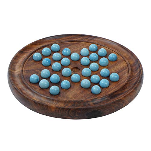 The Ancient Egyptians developed the first set of marbles creating a game that is every bit as enjoyable and popular today as it was centuries ago. With our Handmade Indian Round Wooden Game Board Gifts Set with Glass Marbles you can enjoy this traditional game while adding an exquisite decoration to your decor. The Handmade Indian Round Wooden Game Board Gifts Set with Glass Marbles is entirely hand crafted by talented woodworkers from the Uttar Pradesh region of North India. Fabricated out of Sheesham hardwood the game board has a recessed middle that helps to keep marbles in place. A trough around the outer edge of the board provides a place for storing marbles during game play. In the middle recessed holders are provided for ease of setup. The board measures 8 inches in diameter providing plenty of space for shooting and rolling. With its smooth finish the game board is free of rough sharp edges for safe enjoyment hour after hour. With the Handmade Indian Round Wooden Game Board Gifts Set you'll receive a storage bag filled with beautiful marbles. Each one is produced by hand and there are a number of styles included from solid-coloured marbles to transparent marbles with beautiful swirling decorations inside. All of the marbles are standard sized and perfectly polished for a lustrous attractive finish that enhances their appeal. The addition of the marbles to the gifts set gives you everything that you need to enjoy a game at home or on the go. Not only will our Handmade Indian Round Wooden Game Board Gifts Set with Glass Marbles make a wonderful decoration for your own home and provide hours of enjoyment for you and your family but it also a popular choice of gifts for a variety of occasions. School-aged children teenagers and adults all love the game of marbles making the gifts set a unique present for virtually anyone.
