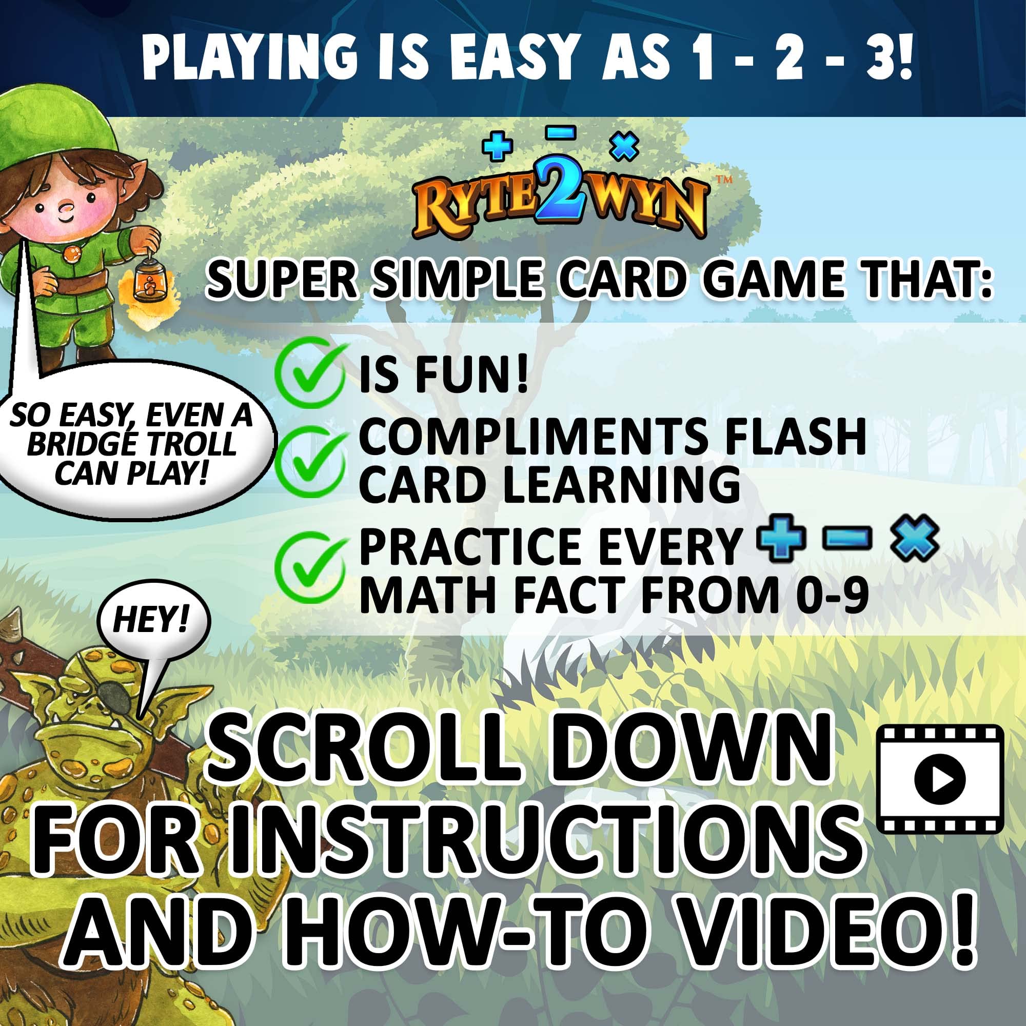 Introducing "Ryte2Wyn - The Magical Card Game of Math"! Dive into a world where math meets magic and learning becomes an enchanting adventure. ð§® Ignite a passion for math: Perfect for young learners who need that extra nudge to master their math facts or as a supplementary tool for Kumon or Mathnasium enthusiasts. ð² Comprehensive Practice: Engage with every Addition Subtraction and Multiplication fact from 0-9. Deck Details: Comes with 50 vibrant Ryte2Wyn game cards showcasing 10 captivating characters and includes 2 handy Multiplication chart cards for quick reference. Created with Care: Designed as a delightful yet educational tool this game ensures kids reinforce their math skills while having a blast. Discover the magic of math with Ryte2Wyn and watch your child's confidence soar!