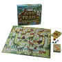Zayn & Zoey are on an adventure in the era long ago looking for an ancient treasure chest. Several dinosaurs and other obstacles on the way make their journey challenging. WANT TO JOIN THEM IN THE HUNT? The brachiosaurus will help you up the trail but the T-rex will throw you back down. Hurry! Let's race through the trail to find the treasure chest! ALSO INCLUDED: DINO-DECK 4-in-1 card game!