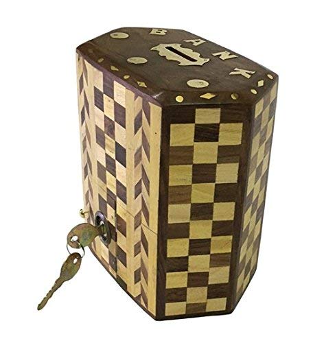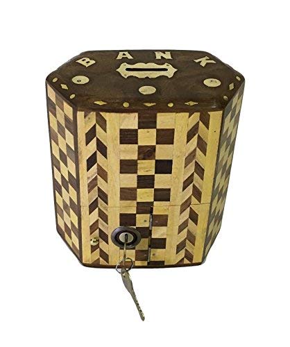 Simply help your child develop consciousness for saving from his own pocket money. This money bank is made in high quality natural wood and is likely to last many years. Purely for its design it is as good a collectible to own as it is a beautiful Dacor item in any part of your home Key is inside the money bank just adjust and pullout it