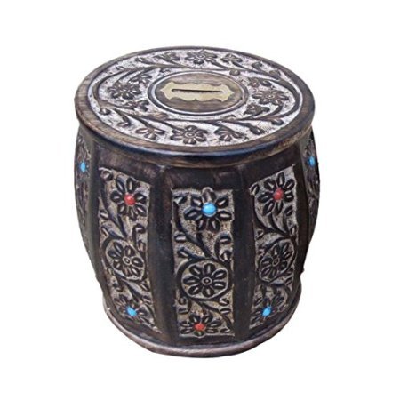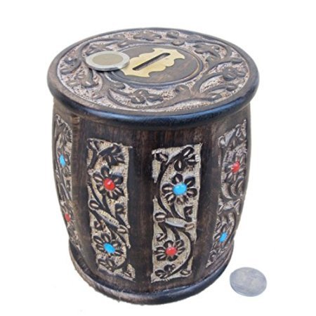 Wooden Antique type of Brown Barrel Coin Box WOODEN COIN BOX WINE BARREL SHAPE ANTIQUE TYPE DIMENSIONS: 6.5x6.5x7"" Brown Coloured Barrel Coin Box. This product is made of high grade wood and has a beautifully embossed body which is also encrusted with blue and red stones. This product can be a very interesting addition to your home decor and will serve as a stylish option for storing your coins. This product is now available for purchase online. All you need to do to buy this product is place an order online and the product will be delivered at a place of your choice.Dimensions(In Inches): 6.5x6.5x7'' color-brown Care Instructions -Clean With Dry Cloth"