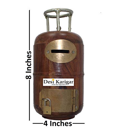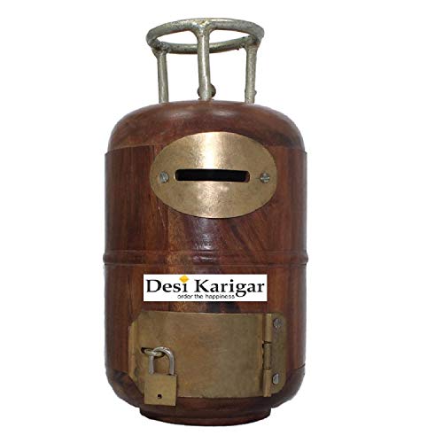 Learn back to save some Money for you or get your lovely kids do so by gifting them this old ethnic cylinder shape money bank (coin box) made by the perfect hands of wooden artisans of rural India in the factory of Desi Karigar. A gift from the past makes a perfect present. Made of wood with brass work to look like an antique Indian LPG Gas Cylinder. A simple functional and well designed. Makes a lovely gift for just about anyone and that can be you yourself! Please Note this is a Hand Made Product so there can be little changes in Design. This money bank will direct you to start your savings at home. A very traditional way of teaching the kids to start saving. Therefore it is durable practical as well as an educational product for your child. In terms of decor it serves as a decorative show-piece when placed in your room or you little ones room. Also it is a quality item meant for both children and adults. You can also use it as a return gift on your children birthday. Desi Karigar Brand is a trusted brand and guarantees the perfect decor for you. You can also check other products of Desi Karigar Brand.