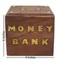 Wooden With Brass Work Antique Money Bank Wooden money bank is made from high quality mango wood with built in lock.home decor money bank coin bank.Colour - Brown Material Used- Mango Wood Size - lxbxh-3.5x3.5x4.5 Inch "