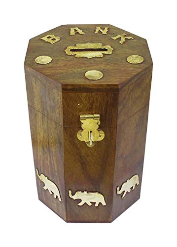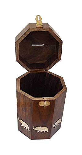 Money box is the traditional name of a coin container; usually used by children. The general use of money box is to store loose change in a quaint decorative manner. Historians have found money boxes that date back to the times of Ancient Greece indicating that mankind has been making special boxes for the safekeeping of coins for centuries. Our Handmade Wooden Piggy Bank - Money Bank - Money Saving Box - Coin Box Decoration continues this tradition and is one of our most popular handmade Indian gifts for children and adults alike. This Savings box/money bank/piggy bank is handcrafted from wood and has a coin slot . It is nicely polished and decorated. May be used for keeping your trinkets and money. Best gift for kids girl boys and adult. Make learning to save money fun for a child of any age! Order the Wooden Money Bank for a birthday the Summer holidays or any other occasion and give that special little one a truly unique gift for kids!