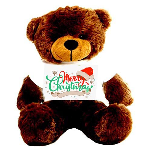 HUG 'n' FEEL SOFT TOYS Big Teddy Bear 3 Feet Long Teddy Bear Wearing A Merry CHEISTMAS T-Shirt Plush & Stuffed Toys (Bear 91 cm) with Free Heart Shape Pillow Choclate Brown