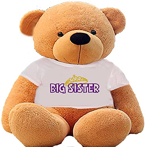 HUG 'n' FEEL SOFT TOYS Big Teddy Bear 3 Feet Long Wearing A Big Sister T-Shirt Plush & Stuffed Toys (Bear 91 cm) with Free Heart Shape Pillow White