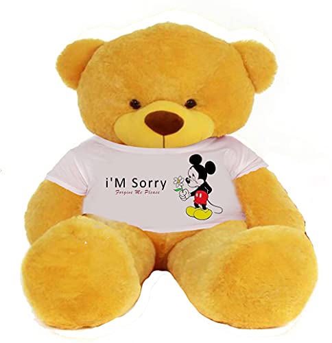 HUG 'n' FEEL SOFT TOYS Big Teddy Bear 3 Feet Long Wearing A i am Sorry T-Shirt Plush & Stuffed Toys (Bear 182 cm) with Free Heart Shape Pillow Yellow