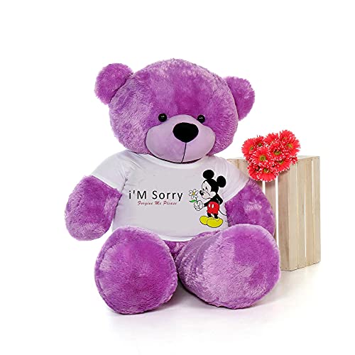 HUG 'n' FEEL SOFT TOYS Big Teddy Bear 3 Feet Long Wearing A i am Sorry T-Shirt Plush & Stuffed Toys (Bear 91 cm) with Free Heart Shape Pillow Purple