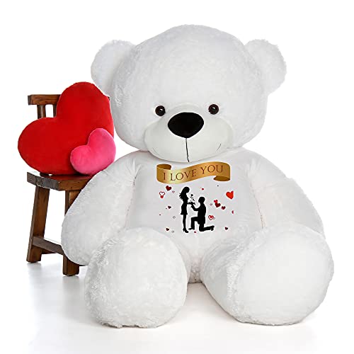 HUG 'n' FEEL SOFT TOYS Big Teddy Bear 3 Feet Long Wearing A I Love You T-Shirt Plush & Stuffed Toys (Bear 121 cm) with Free Heart Shape Pillow White