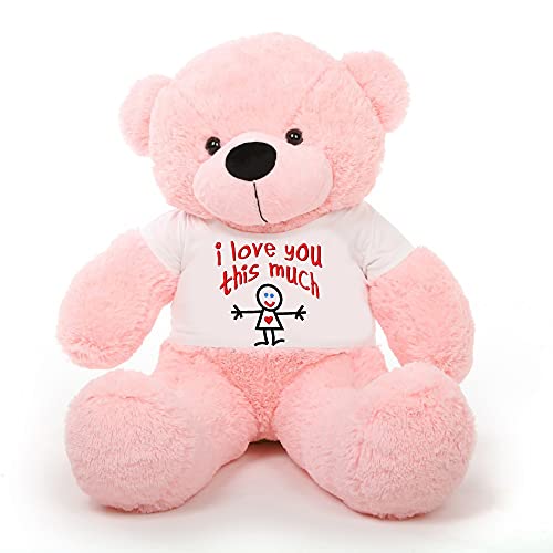 HUG 'n' FEEL SOFT TOYS Big Teddy Bear 3 Feet Long Wearing A Love u This Much T-Shirt (Bear 91 cm)