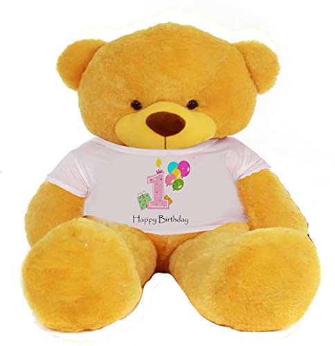 HUG 'n' FEEL SOFT TOYS Big Teddy Bear 3 Feet Long Wearing A1STHAPPY Birthday T-Shirt Plush & Stuffed Toys (Bear 152 cm) with Free Heart Shape Pillow Yellow