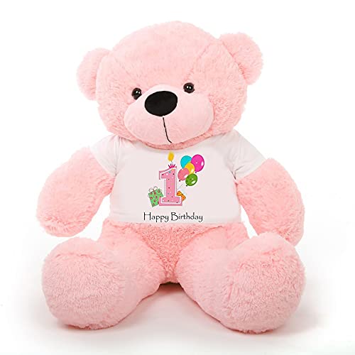 HUG 'n' FEEL SOFT TOYS Big Teddy Bear 3 Feet Long Wearing A1STHAPPY Birthday T-Shirt Plush & Stuffed Toys (Bear 182 cm) with Free Heart Shape Pillow Pink