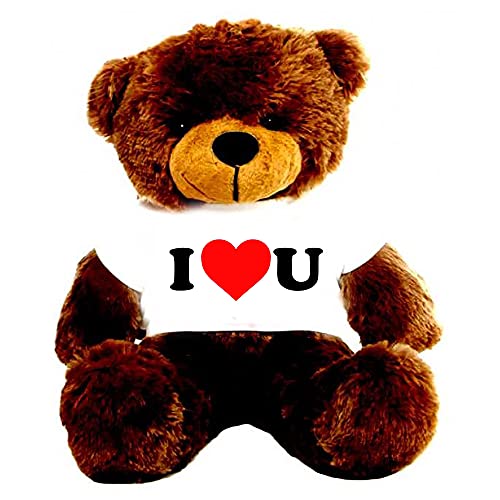 HUG 'n' FEEL SOFT TOYS Big Teddy Bear 3 Feet Long Wearing Ai Love u T-Shirt Plush & Stuffed Toys (Bear 91 cm) with Free Heart Shape Pillow Choclate Brown
