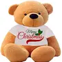 HUG 'n' FEEL SOFT TOYS Big Teddy Bear 4 feet Long Teddy Bear Wearing A Merry CHEISTMAS T-Shirt Teddy Bear Plush & Stuffed Toys (Bear 121 cm) with Free Heart Shape Pillow Brown