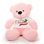 HUG 'n' FEEL SOFT TOYS Big Teddy Bear 4 feet Long Teddy Bear Wearing A Merry CHEISTMAS T-Shirt Teddy Bear Plush & Stuffed Toys (Bear 121 cm) with Free Heart Shape Pillow Pink