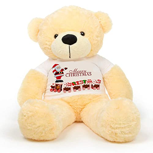 HUG 'n' FEEL SOFT TOYS Big Teddy Bear 4 feet Long Wearing A Merry CHEISTMAS T-Shirt Plush & Stuffed Toys (Bear 121 cm) with Free Heart Shape Pillow Cream
