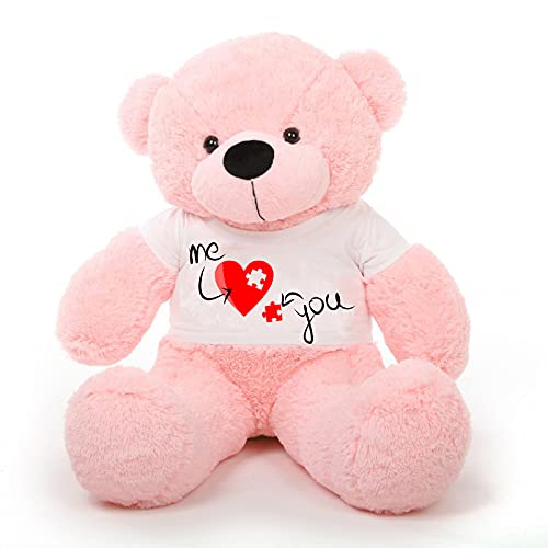 HUG 'n' FEEL SOFT TOYS Big Teddy Bear 4 feet Long Wearing A Valentine Day T-Shirt Plush & Stuffed Toys (Bear 121 cm) with Free Heart Shape Pillow Pink