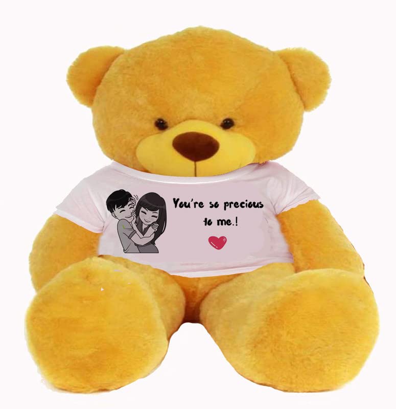 HUG 'n' FEEL SOFT TOYS Big Teddy Bear for Gift of Any Occasion Wearing a âYour are so Precious to me T-Shirt 3 feet Yellow Plush & Stuffed Toys
