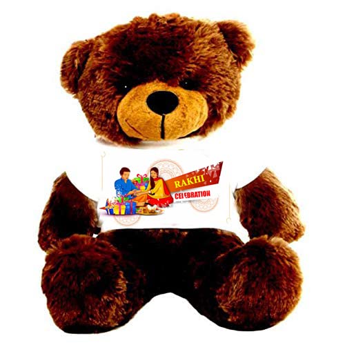 HUG 'n' FEEL SOFT TOYS Big Teddy Bear for Gift of raksha bhandhan Wearing a ââ¬ÅHappy Raksha Bhandhan02 Design T-Shirt 4 feet Chocolate Plush & Stuffed Toys