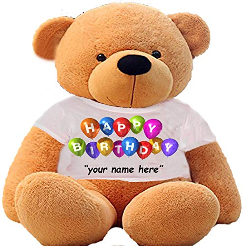 HUG 'n' FEEL SOFT TOYS Big Teddy Bear Wearing Happy Birthday with Your Name T-Shirt 3 feet Brown_T Shirt_Happy Birthday with Your Name Plush & Stuffed Toys