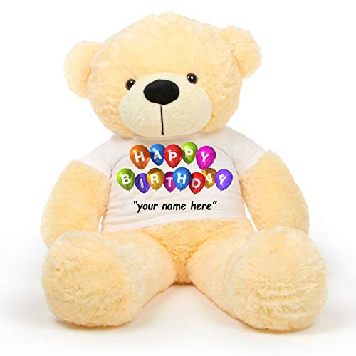 HUG 'n' FEEL SOFT TOYS Big Teddy Bear Wearing Happy Birthday with Your Name T-Shirt 4 feet Cream_T Shirt_Happy Birthday with Your Name Plush & Stuffed Toys