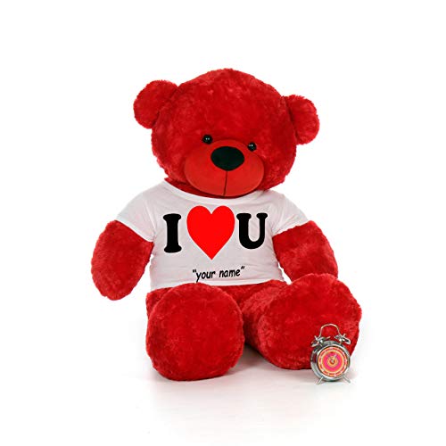 HUG 'n' FEEL SOFT TOYS Big Teddy Bear Wearing I Love u Customise Your Name T-Shirt 3 feet Red_T Shirt_I Love u Customise Your Name Plush & Stuffed Toys