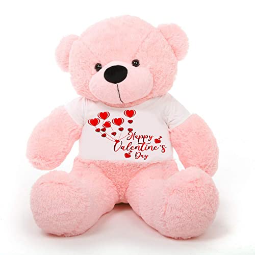 HUG 'n' FEEL SOFT TOYS Soft Toys Big Teddy Bear Wearing Happy Valentine Day T-Shirt 3 feet Pink_T Shirt_Happy Valentine Day 02 Plush & Stuffed Toys