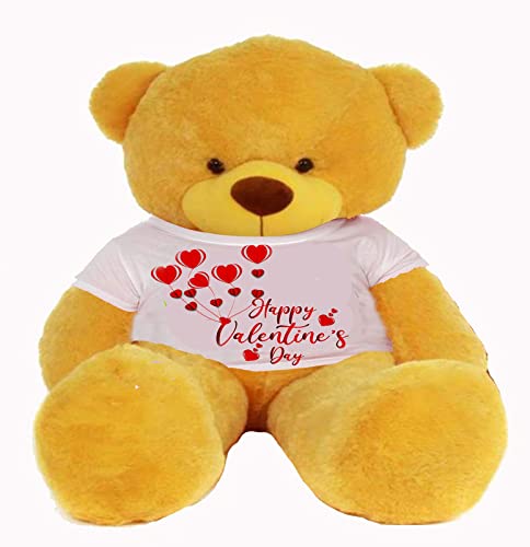 HUG 'n' FEEL SOFT TOYS Soft Toys Big Teddy Bear Wearing Happy Valentine Day T-Shirt 3 feet Yellow_T Shirt_Happy Valentine Day 02 Plush & Stuffed Toys
