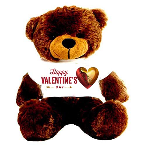 HUG 'n' FEEL SOFT TOYS Soft Toys Big Teddy Bear Wearing Happy Valentine Day T-Shirt 4 feet chocholate_T Shirt_Happy Valentine Day 04 Plush & Stuffed Toys