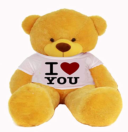 HUG 'n' FEEL SOFT TOYS Soft Toys Big Teddy Bear Wearing Happy Valentine Day T-Shirt 4 feet Yellow_T Shirt_Happy Valentine Day 06 Plush & Stuffed Toys