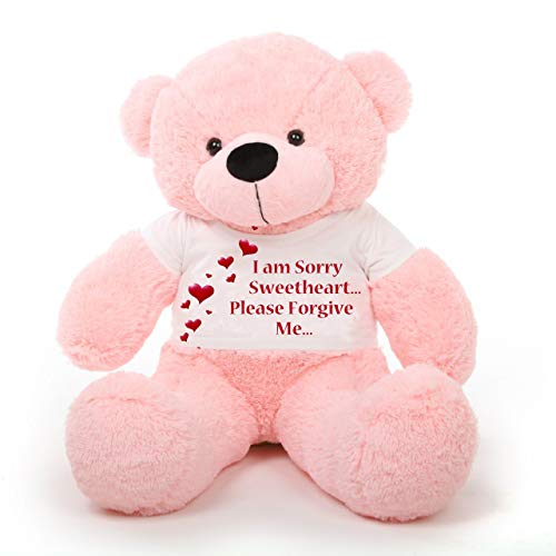 Hug'n'Feel Soft Toys Big Teddy Bear Wearing I am Sorry Sweetheart Please Forgive me T-Shirt 4 feet Pink_T Shirt_I am Sorry Sweetheart Please Forgive me Plush & Stuffed Toys